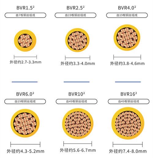 2、BVR的構(gòu)造是由電纜銅線電導(dǎo)體和PVC絕緣層構(gòu)成的