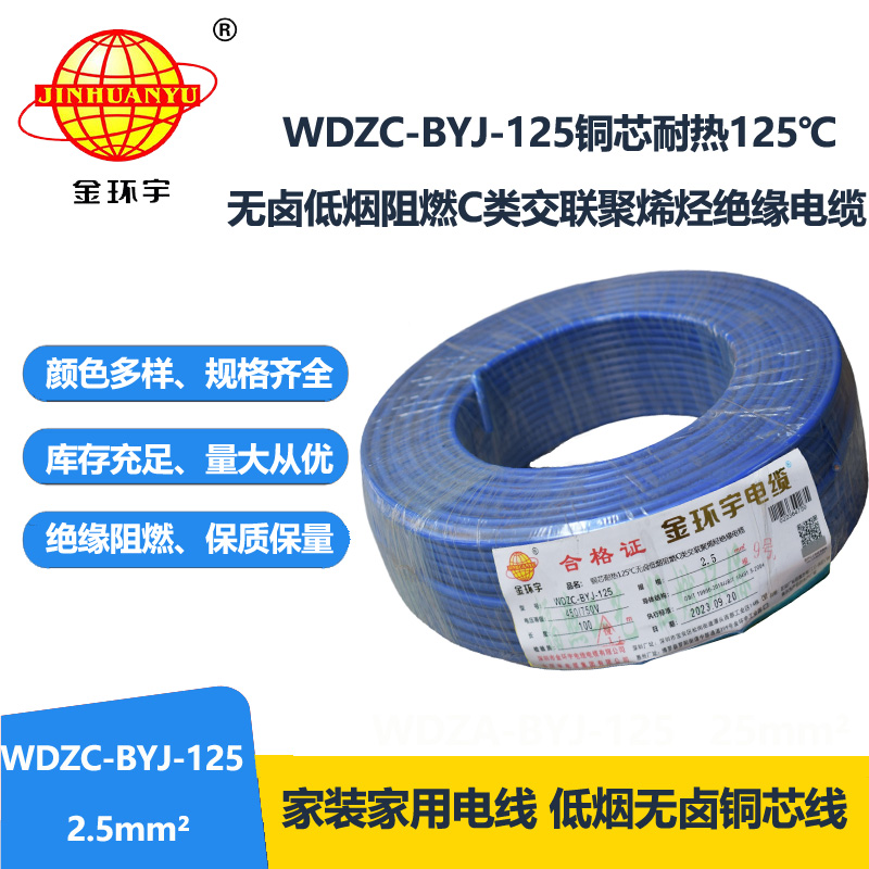 金環(huán)宇電線WDZC-BYJ-125 耐熱低煙無鹵阻燃電纜: