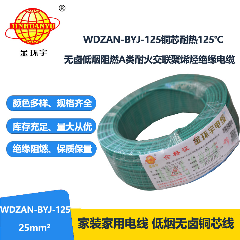 WDZAN-BYJ-125℃銅芯耐熱125℃低煙無鹵A級阻燃耐火(W-無鹵;D--低煙;Z--阻燃;A-級別;N-耐火),BYJ---銅芯導(dǎo)體交聯(lián)聚乙烯絕緣固定敷設(shè)用電線