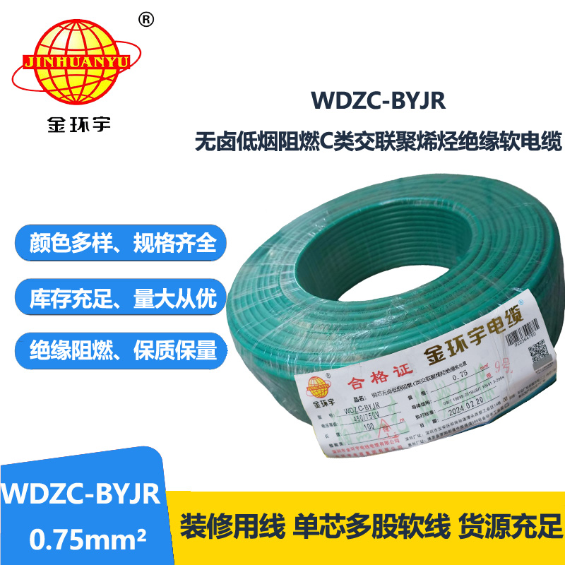WDZC-BYJR指低煙無(wú)鹵阻燃聚烯烴護(hù)套,交聯(lián)聚乙烯絕緣軟電線。WDZC分別是無(wú)鹵、低煙、阻燃、聚烯烴,B指電線,YJ是交聯(lián)聚乙烯絕緣,R是軟。