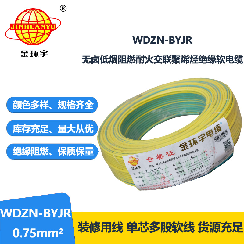 WDZN-BYJR指低煙無(wú)鹵阻燃耐火聚烯烴護(hù)套,交聯(lián)聚乙烯絕緣軟電線。WDZN分別是無(wú)鹵、低煙、阻燃、耐火、聚烯烴,B指電線,YJ是交聯(lián)聚乙烯絕緣,R是軟。