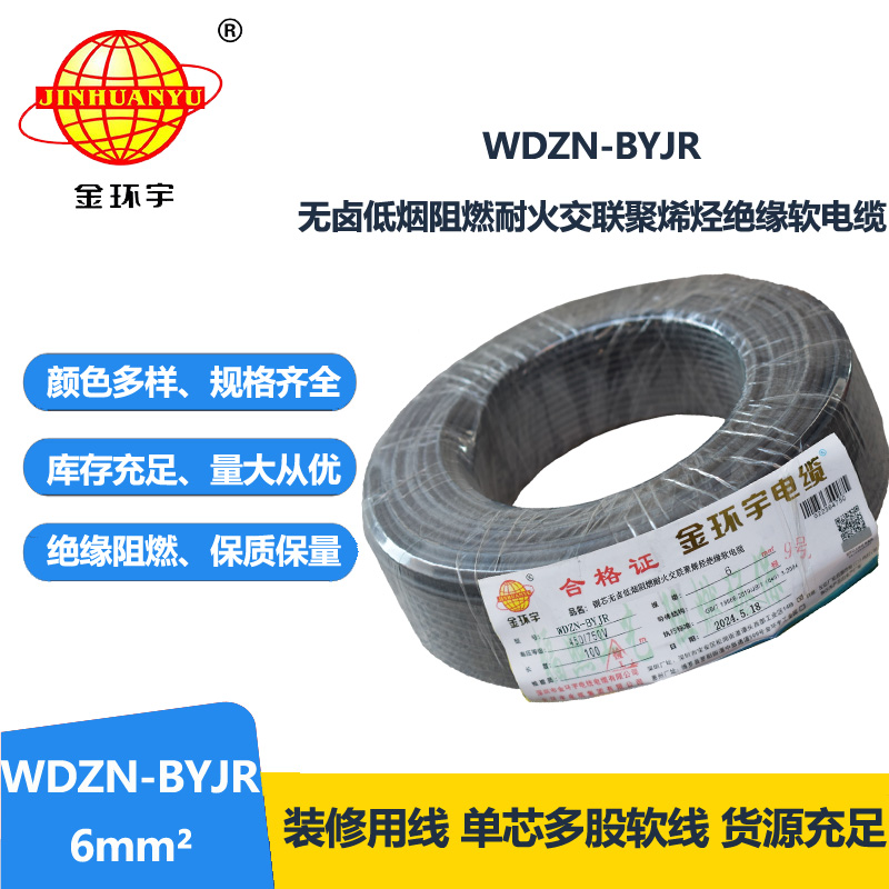 WDZN-BYJR指低煙無(wú)鹵阻燃耐火聚烯烴護(hù)套,交聯(lián)聚乙烯絕緣軟電線。WDZN分別是無(wú)鹵、低煙、阻燃、耐火、聚烯烴,B指電線,YJ是交聯(lián)聚乙烯絕緣,R是軟。