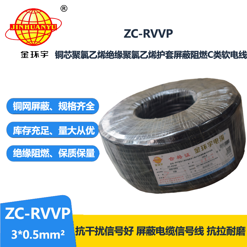 金環(huán)宇電線電纜 c級(jí)阻燃電纜ZC-RVVP3X0.5平方 銅編織 護(hù)套屏蔽軟電纜