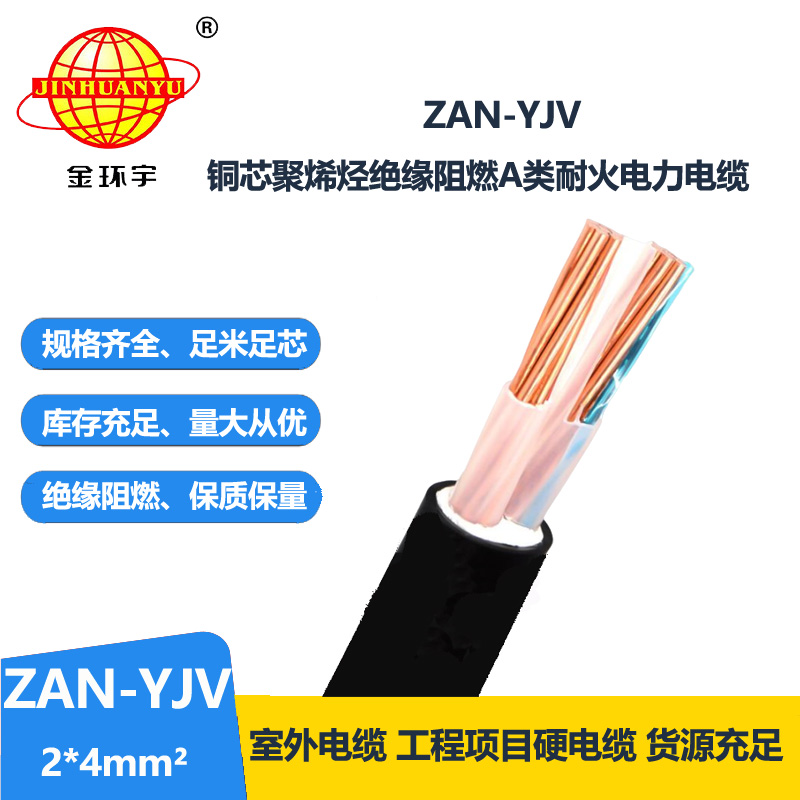 金環(huán)宇電線電纜 耐火yjv電纜 ZAN-YJV 2X4平方 深圳阻燃電力電纜