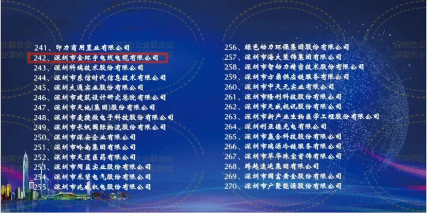 金環(huán)宇電線電纜憑借雄厚的企業(yè)實力和強(qiáng)勁的業(yè)績發(fā)展,在榜單上位列242名。