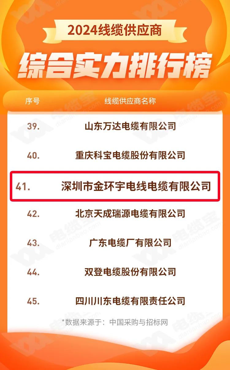 2024年4月,備受矚目的“2024年全國線纜供應商綜合實力排行榜”評選結(jié)果揭曉,金環(huán)宇電纜憑借強大的綜合實力和廣泛的市場認可,榮譽上榜,成功躋身“全國電線電纜供應商綜合實力50強”。這一成績的取得,不僅彰顯了金環(huán)宇電纜在行業(yè)內(nèi)的領(lǐng)先地位,更是對其長期以來堅持品質(zhì)與創(chuàng)新、不斷追求卓越精神的肯定。