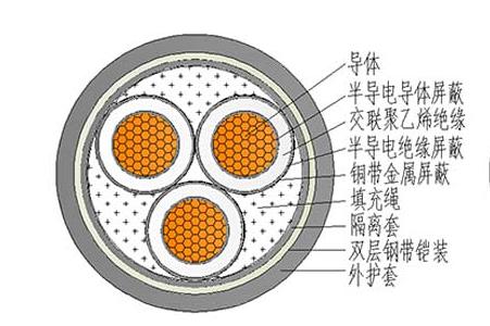 其電纜線在生產(chǎn)制造時(shí)從里至外的質(zhì)量構(gòu)造為銅電導(dǎo)體+絕緣層+添充+包帶+護(hù)線套五一部分構(gòu)成。