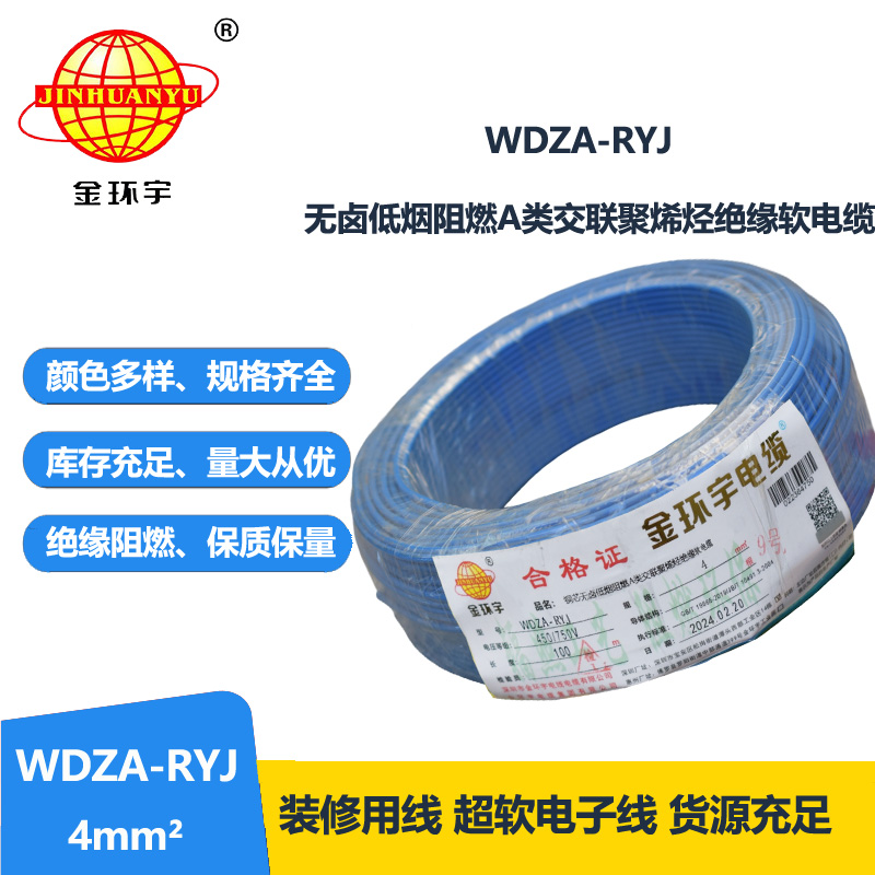 WDZA-RYJ低煙無鹵阻燃電線具有高阻燃、耐高溫、低煙低毒的良好性能,適用于額定電壓450/750V及以下耐熱105℃或125℃固定布線和電力、電子設(shè)備內(nèi)部連接線,如家庭裝修、消防設(shè)備、緊急電源插座等供電。