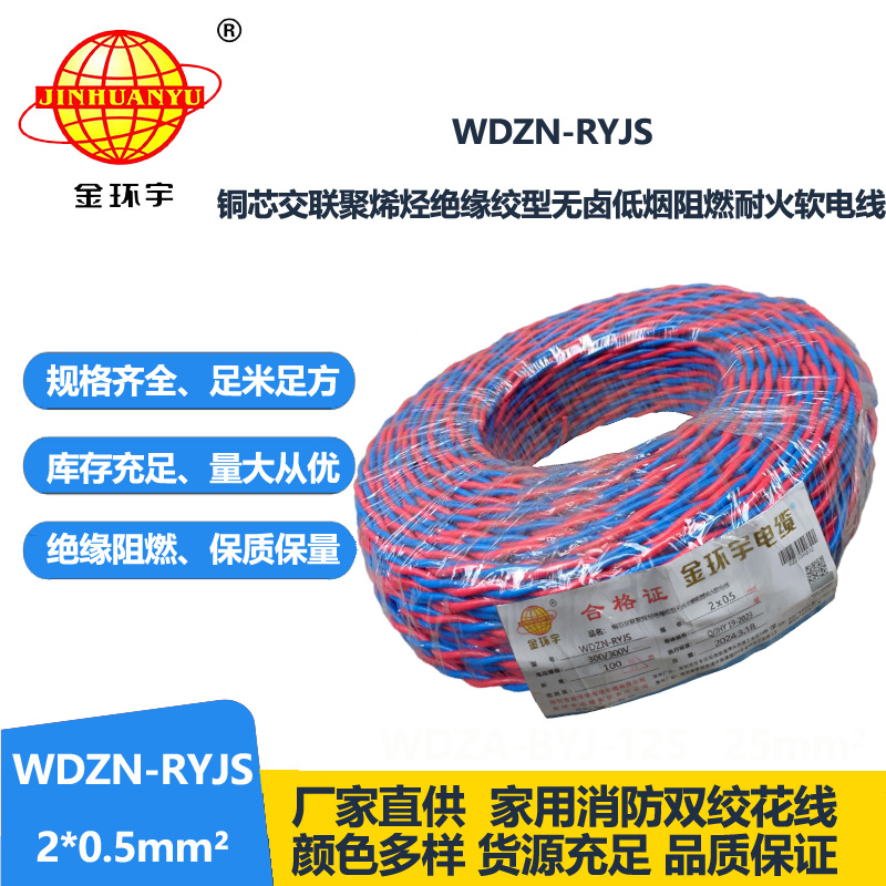 WDZN-RYJS全稱銅芯聚烯烴絕緣阻燃耐火型連接軟線、對絞多股軟線,簡稱雙絞線。RVS2*0.5是由2根0.5平方的電線相互對絞制作而成,帶阻燃耐火特性。