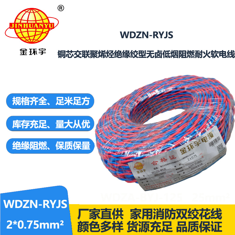 WDZN-RYJS全稱銅芯聚烯烴絕緣阻燃耐火型連接軟線、對(duì)絞多股軟線,簡(jiǎn)稱雙絞線。RVS2*0.75是由2根0.75平方的電線相互對(duì)絞制作而成,帶阻燃耐火特性。