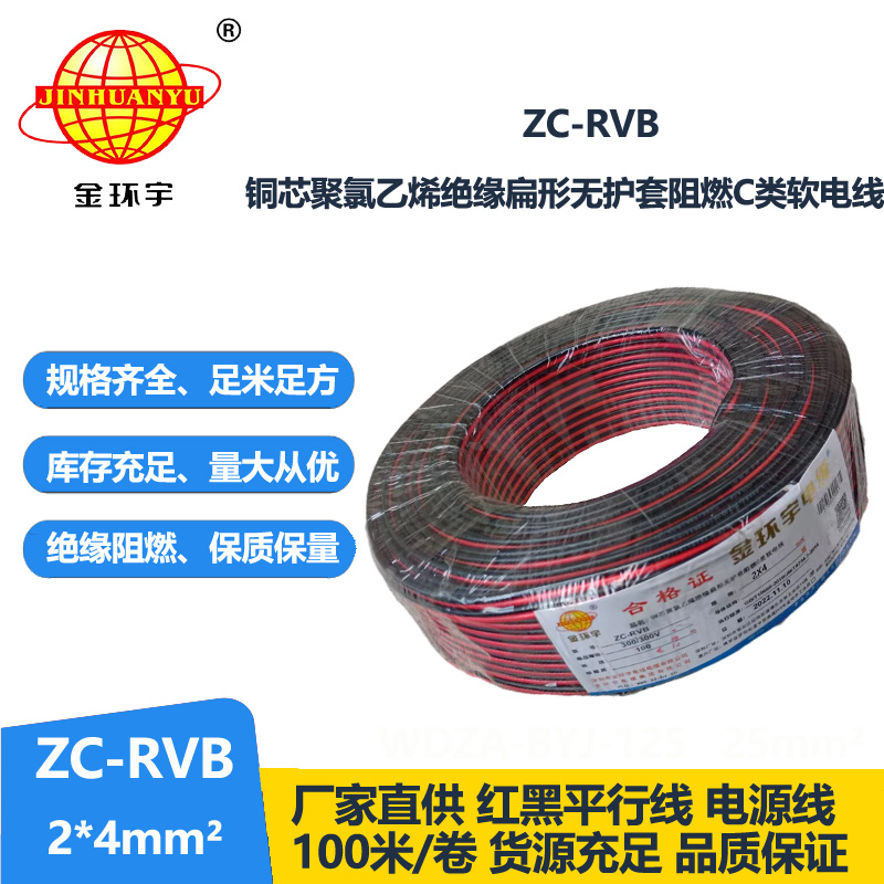 金環(huán)宇 ZC-RVB2*4平方 rvb電源線 阻燃紅黑電纜線