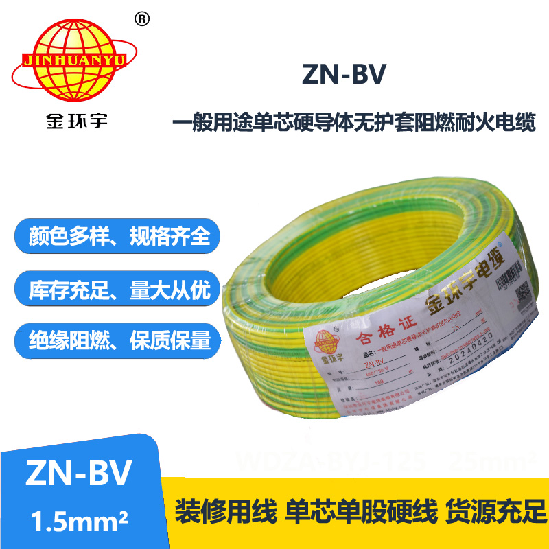 ZN-BV1.5平方就是導(dǎo)線截面為1.5平方毫米的銅芯聚氯乙烯絕緣阻燃電線,由一根銅線組成,多用于450/750V及以下動(dòng)力裝置、日用電器、儀表用線及固定的埋設(shè)當(dāng)中。