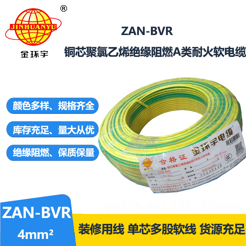 金環(huán)宇電線 銅芯 ZAN-BVR 4平方 A類阻燃耐火 4平方bvr電線價格