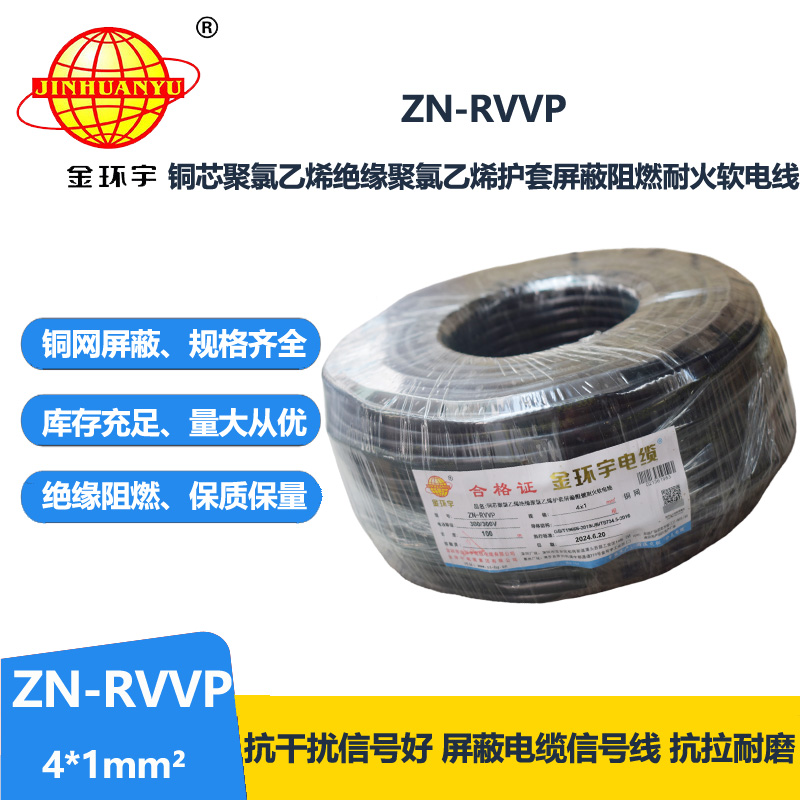 金環(huán)宇電線電纜 ZN-RVVP 4X1 阻燃耐火銅編織屏蔽軟電纜 四芯屏蔽線纜